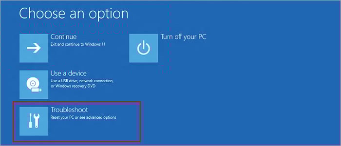 高度な起動画面に到達したら、[トラブルシューティング] を選択します.