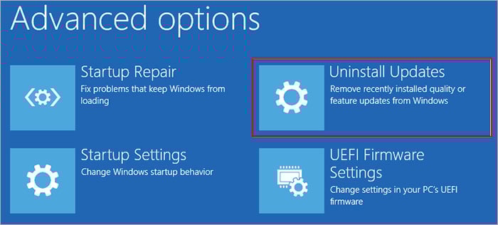次に、詳細オプションを選択します>アップデートをアンインストール.