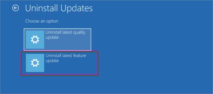 Windows 11 アップグレードの試用期間中でも [戻る] ボタンが応答しないか機能しない場合は、高度なスタートアップ オプションを使用できます。このプロセスを使用して機能更新プログラムをアンインストールすると、以前の Windows 11 バージョンに戻すことができます。