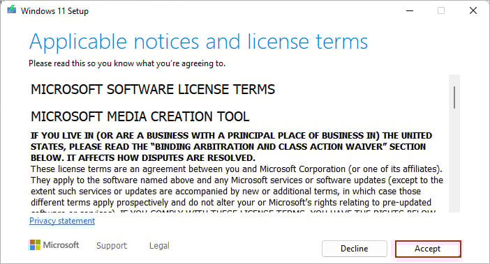 Microsoft 公式サイト。ファイルを開きます。 Accept をクリックしてインストールを続行します。