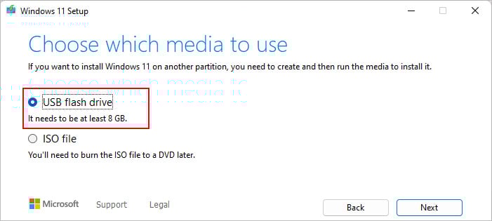 次に、空き容量が 8 GB 以上ある空の USB を挿入し、USB フラッシュ ドライブのオプションを選択します。