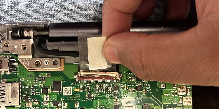 一部のラップトップでは、ベゼルがヒンジ カバーと融合しています。この場合、ふたを閉じて、ヒンジの継ぎ目からケースをこじ開ける必要があります。ベゼルを取り出し、LCD パネルのすべての側面のネジを外します。 LCD パネルを引き出し、慎重にキーボードの上に置き、ディスプレイ ケーブルを損傷しないようにします。ここで、コネクタの金属部分をパネルのポートからドライバで押して、ケーブルを取り外します。断線するおそれがあるため、ケーブルを引っ張らないでください。 ESD ブラシを使用してポートをクリーニングします。次に、すべてのピンが正しく差し込まれていることを確認しながら、ケーブルを再び差し込みます。