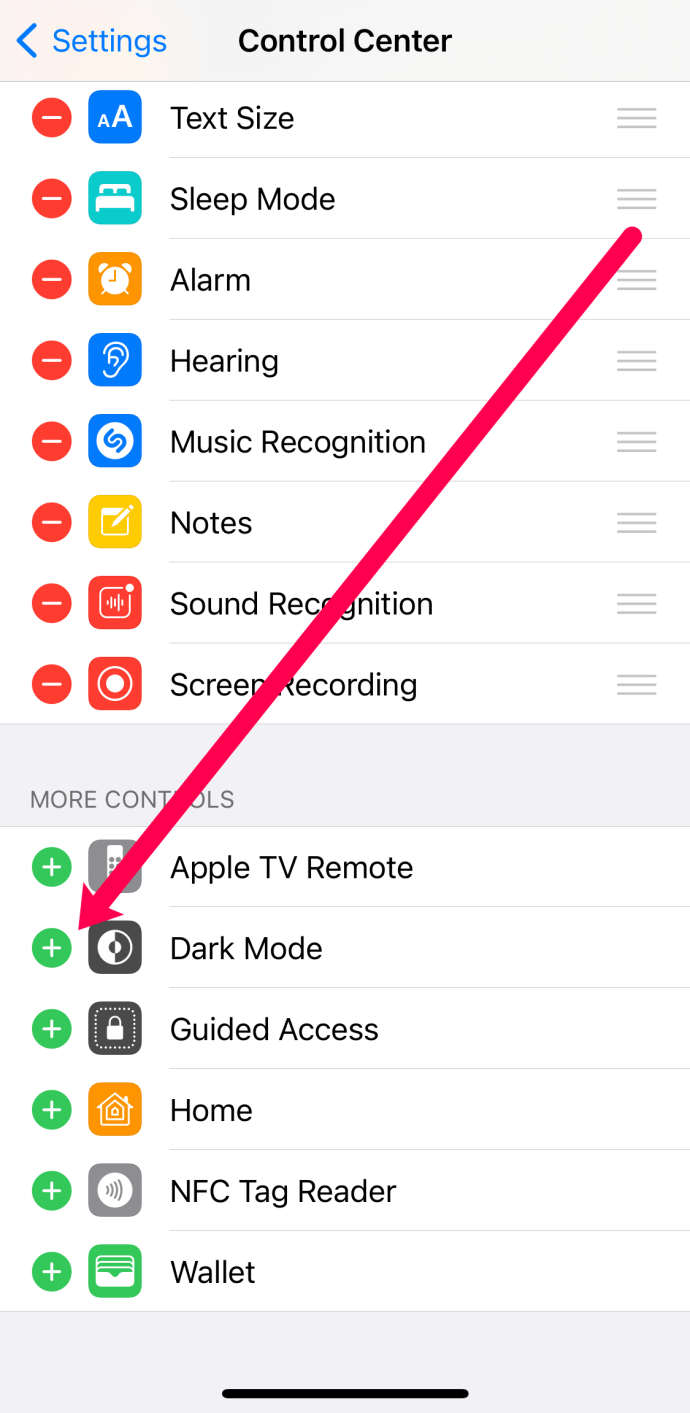 それよりさらに便利なのは、コントロール センターにダーク モード スイッチを追加することです。そのためには、以下の手順に従ってください: