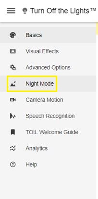拡張機能のオプション ページがブラウザの新しいタブで開きます。[ナイト モード] をクリックします。 > 左のメニューから