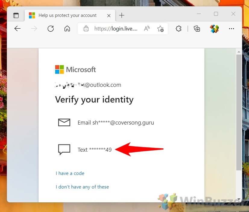 アカウント情報に応じて、確認コードを SMS で受け取るか、リンクされた別のメール アカウントへのメールで受け取るかを選択できます.
