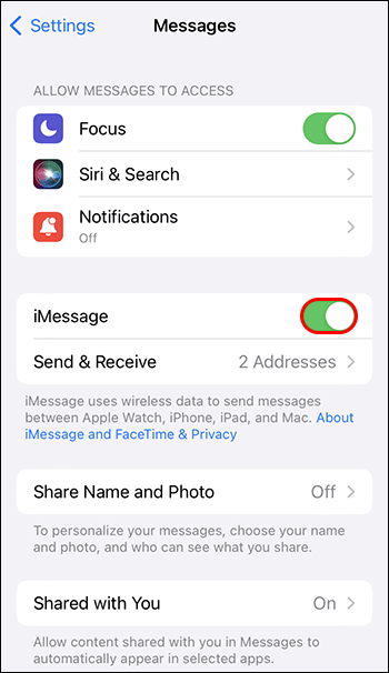 「メッセージ」をタップします。ボタンをタップしますをタップしてオフにします。