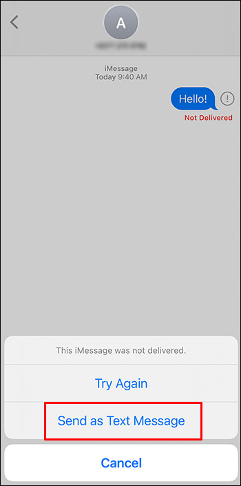 送信したメッセージを長押しします (「未配信」と表示されている場合は、その横にある小さな感嘆符)。「テキスト メッセージとして送信」オプションを選択します。このようにして、iOS かどうかに関係なく、携帯電話で通常の SMS を受信します。