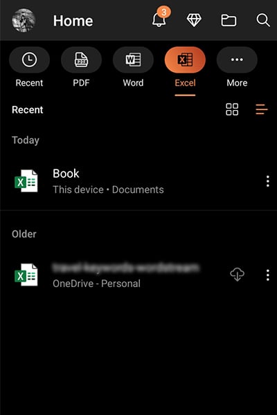 Buka aplikasi Office . Pilih fail anda daripada halaman utama.Daripada bar menu, pilih ikon Edit.