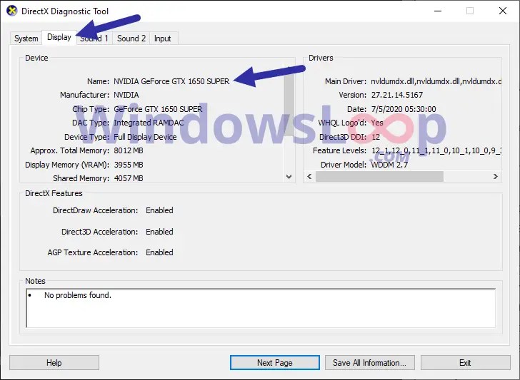 Alat Diagnostik DirectX Untuk mencari maklumat CPU dan GPU