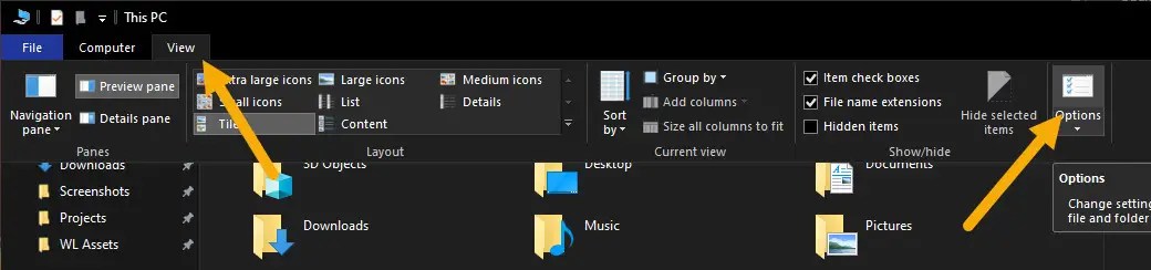 Sebaik sahaja ia dibuka, klik” view “tab, dan kemudian klik”“ Buka File Explorer ke “menu dropdown. Selepas itu, klik butang” ok “untuk menyimpan perubahan.