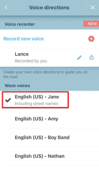 WAZE membolehkan anda membuat pengalaman navigasi peribadi dengan merakam suara anda sendiri. Untuk memulakan, pergi ke Tetapan> Suara dan Suara> Tambah Suara. Pilih arahan seperti pusing kiri dalam 200 meter, dan ikuti arahan pada skrin. Setelah selesai, simpan rakaman anda dan tetapkannya sebagai suara lalai anda.