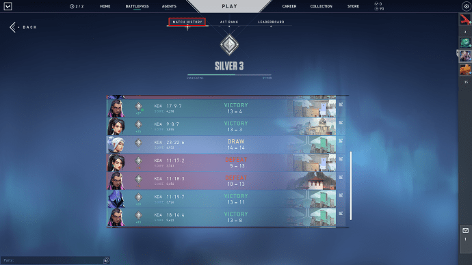 Als u uw eerdere wedstrijden begrijpt, kunt u bepalen wat u goed doet en waar het fout gaat terwijl u hogerop komt. Bekijk de onderstaande stappen om toegang te krijgen tot uw wedstrijdgeschiedenis: