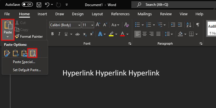 Er zijn plakopties in MS Word die u opties geven over hoe u de gekopieerde tekst wilt plakken. Om de tekst zonder hyperlinks te plakken, moet u de optie Alleen tekst behouden van MS Word gebruiken. Hieronder volgen de stappen om plakopties te gebruiken: