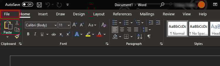 Open MS Word.Ga naar Bestand in de linkerbovenhoek.