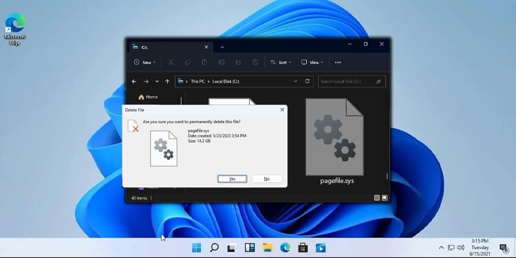 U kunt het pagefile.sys-bestand niet verwijderen aangezien het een systeembestand is en wanneer u probeert het te verwijderen, u krijgt een dialoogvenster met de tekst Bestand in gebruik.