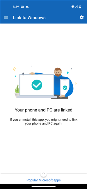 OPMERKING: Als de twee apparaten problemen hebben met synchroniseren, raadpleegt u het eerste hoofdstuk van deze zelfstudie opnieuw en volgt u de instructies in de opsommingstekens. En als u Phone Link beu bent, kunt u de app altijd van uw Android-smartphone verwijderen en ook uitschakelen in Windows.