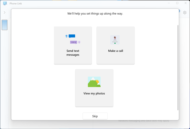 Wanneer Windows klaar is met installeren op uw computer of apparaat, wordt de Phone Link-app geopend en kunt u uw telefoon op uw pc gaan gebruiken.