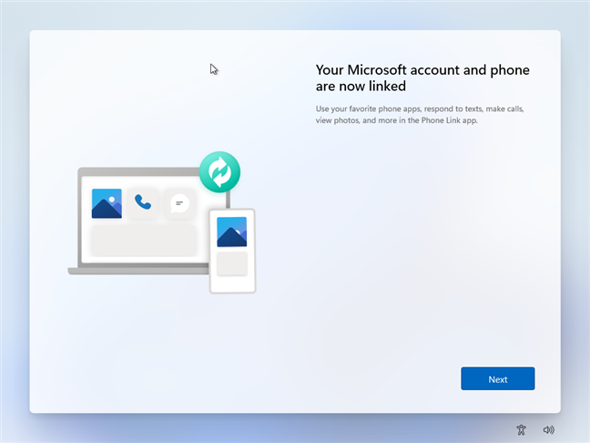 Op uw Android-smartphone, als u deze nog niet heeft, wordt u gevraagd om de Link to Windows-app te installeren. Vervolgens moet u dezelfde koppelingsstappen uitvoeren als in het eerdere gedeelte van deze zelfstudie. En als u klaar bent, zou de Windows-installatiewizard u moeten vertellen dat”Uw Microsoft-account en telefoon nu zijn gekoppeld.”