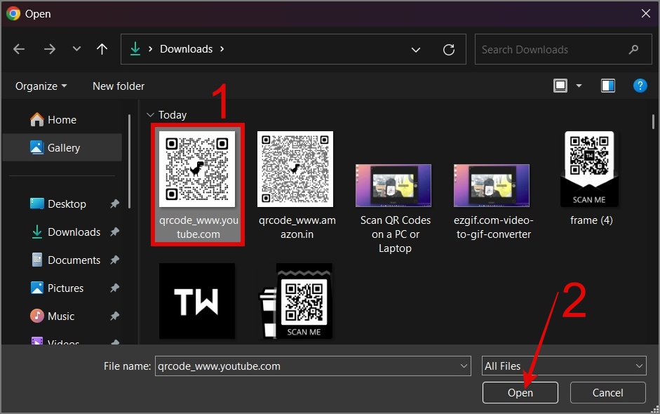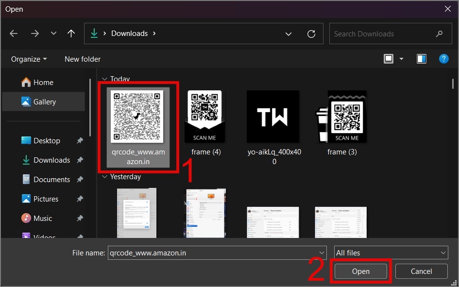 2. Selecteer zoals gewoonlijk de QR-afbeelding en klik op Openen.