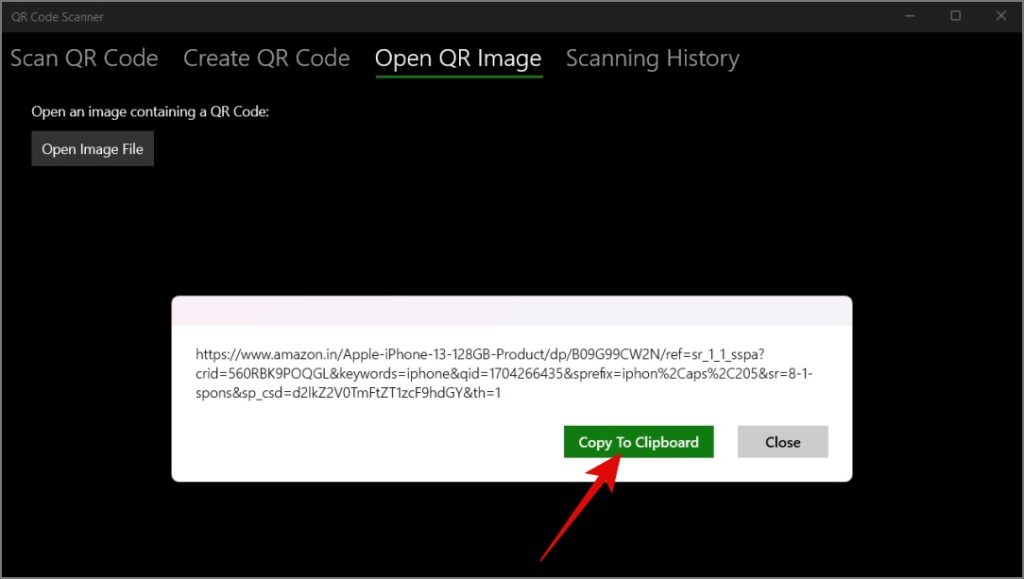 2. Wijs nu de QR-code binnen het frame en zodra de scan is voltooid, wordt de webpaginalink onderaan weergegeven. Klik erop om de webpagina te openen.