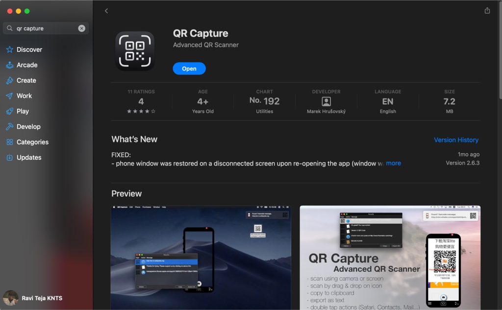 1. Installeer de QR Capture-applicatie uit de Mac App Store.