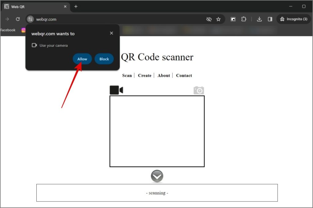 1. Open de Web QR website in uw desktopbrowser en als daarom wordt gevraagd, Toestaan de cameratoegang.