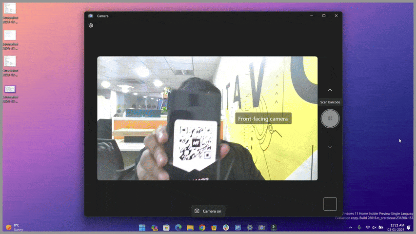 1. Open de Camera app op uw Windows-pc of laptop en ga vervolgens naar het tabblad Barcode.