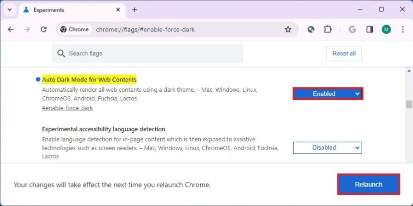 De optie “Automatische donkere modus voor webinhoud” is een experimentele functie die is ontworpen om automatisch een donker thema toe te passen op websites die de donkere modus niet standaard ondersteunen, waardoor de browse-ervaring in omstandigheden met weinig licht en een consistente weergave van alle webinhoud wanneer de donkere modus is ingeschakeld in de browser of de instellingen van Windows 11 (of 10).