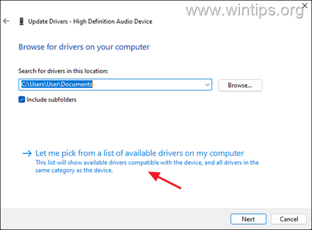 Een andere effectieve methode om de audioproblemen in Windows 111/10 op te lossen, is het gebruik van Microsoft’s’High Definition Audio’Driver voor uw geluidskaart. Driver.