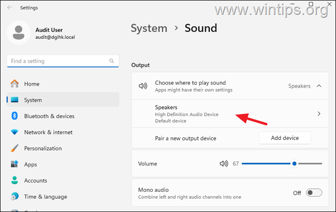 1. Klik met de rechtermuisknop op de luidspreker icon in de taakbar en selecteer illustratie . src=”https://www.wintips.org/wp-content/uploads/2025/02/image_thumb-19.png”width=”422″height=”224″>