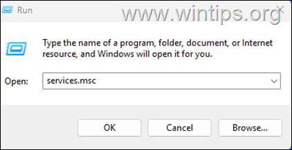 1. Press the Windows + r toetsen om het dialoogvenster uit te voeren .
