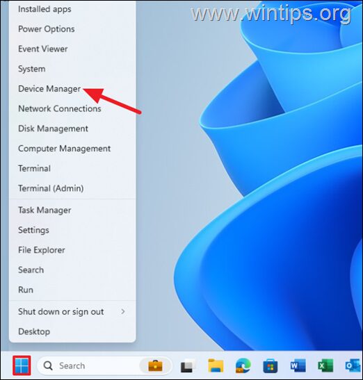 1. Klik met de rechtermuisknop Op het startmenu en open apparaatbeheer.