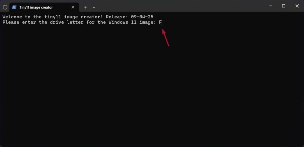 Aangezien we het nieuwste Windows 11 25H2 ISO-bestand hebben gedownload, gaan we beginnen met het bouwen van het Tiny11 ISO-bestand.