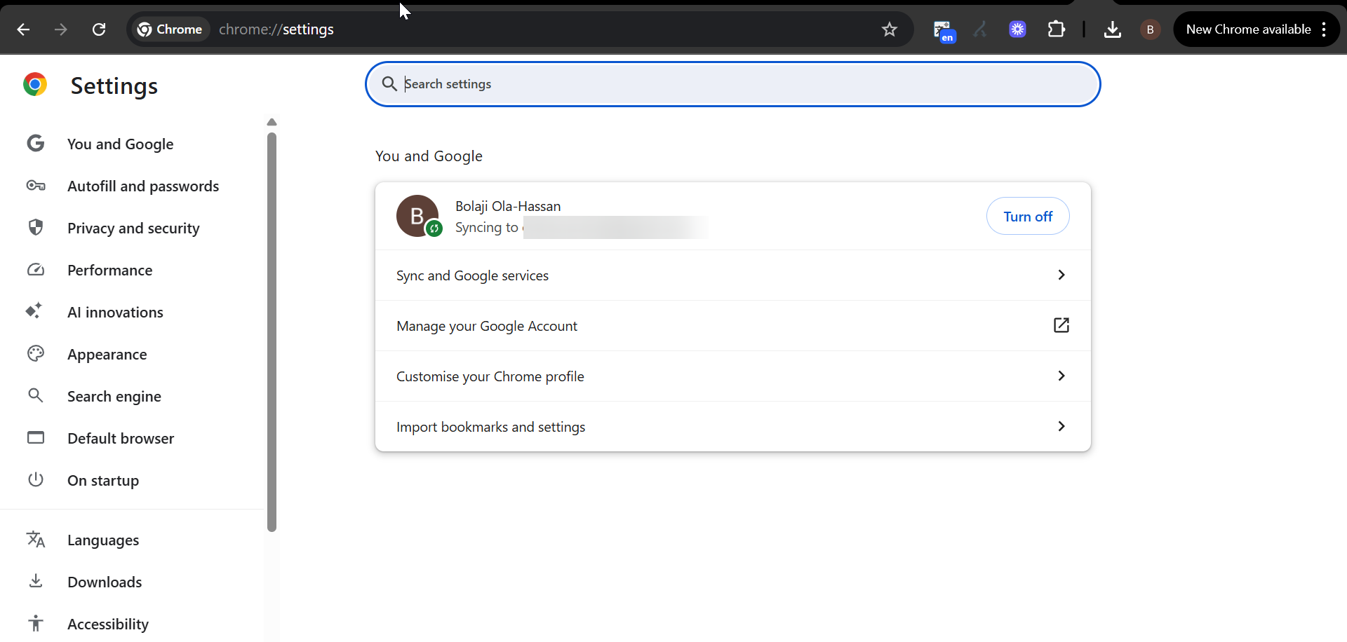 U en Google: Beheer de synchronisatie-en personalisatiefuncties van uw Google-account. Privacy en beveiliging: pas cookies, rechten en browsegegevensopties aan. Automatisch aanvullen en wachtwoorden: bewaar en beheer opgeslagen inloggegevens en betalingsgegevens. Uiterlijk en opstarten: verander uw thema, startpagina en opstartgedrag.