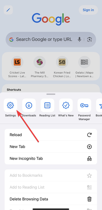De iOS-versie van Chrome gebruikt een iets andere lay-out, maar toegang tot Instellingen volgt hetzelfde algemene patroon. Open Chrome en tik op het pictogram met de drie stippen (rechtsboven of onderaan, afhankelijk van uw versie).