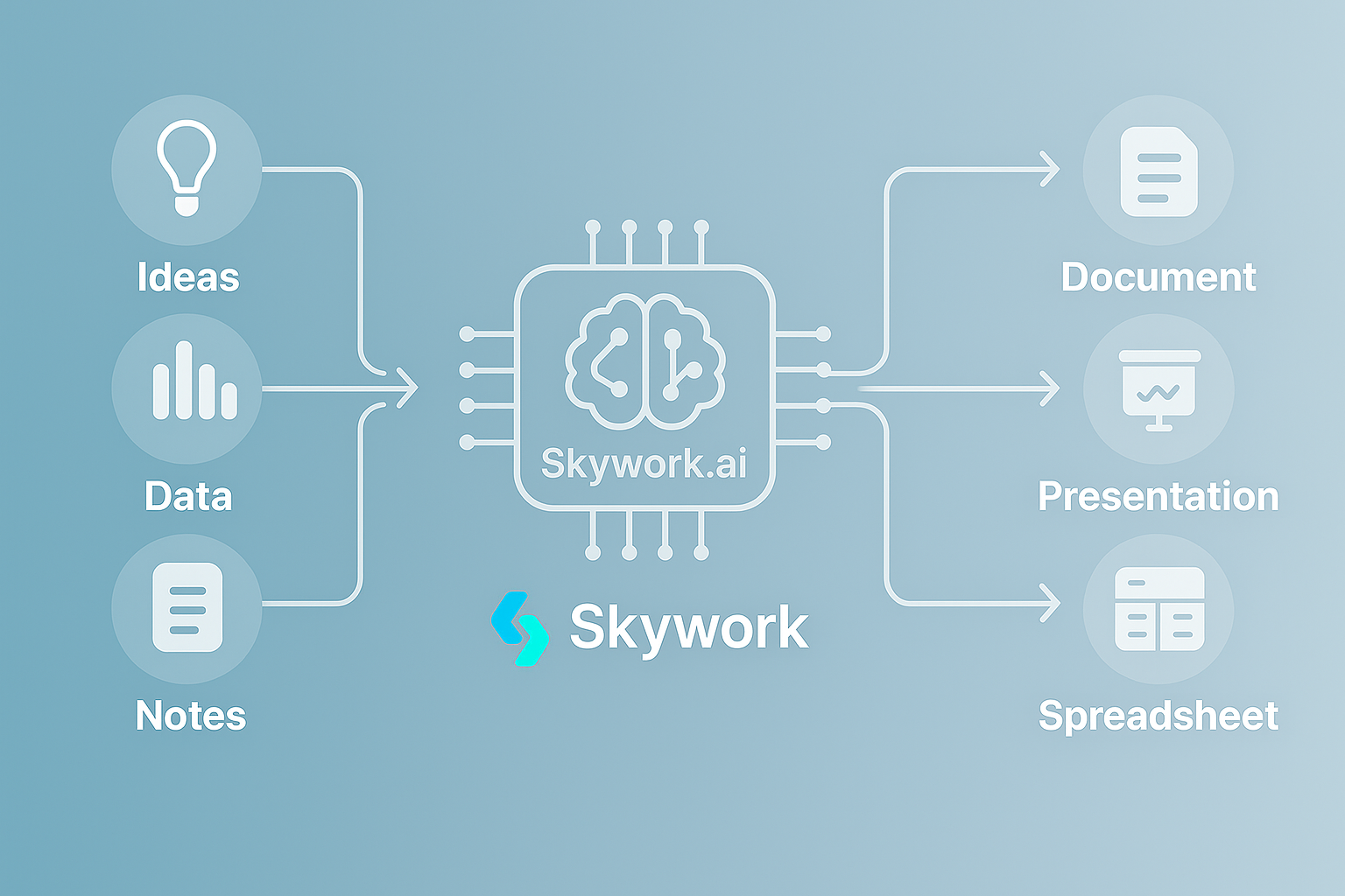 Skywork.ai is een AI-platform dat is gebouwd om de repetitieve delen van modern werk te verzorgen, of dat nu het opstellen van documenten, het bouwen van dia’s of het omzetten van gegevens in een bruikbare vorm betekent, zodat u zich kunt concentreren op denken, creëren en beslissen.