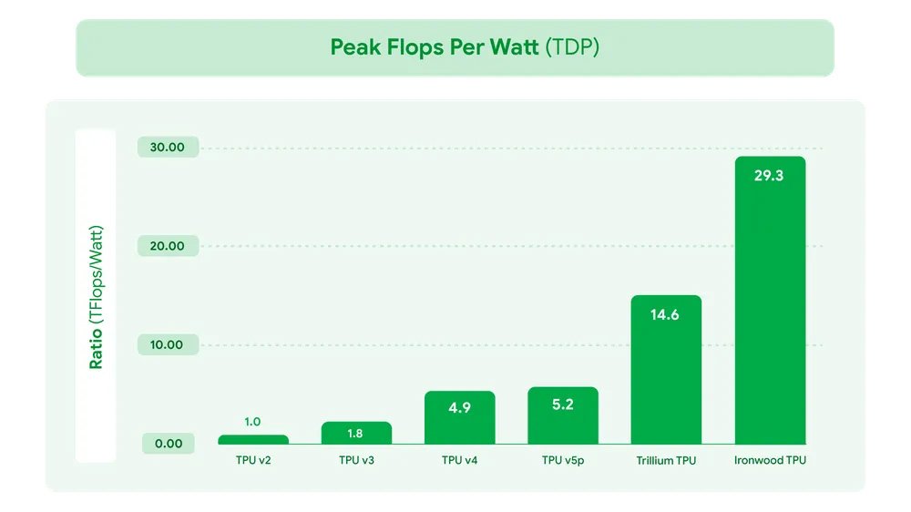 Deze brute kracht gaat gepaard met een focus op efficiëntie; Ironwood beschikt over tweemaal de prestaties per watt van Trillium, waardoor het de meest energiezuinige chip van Google tot nu toe is.