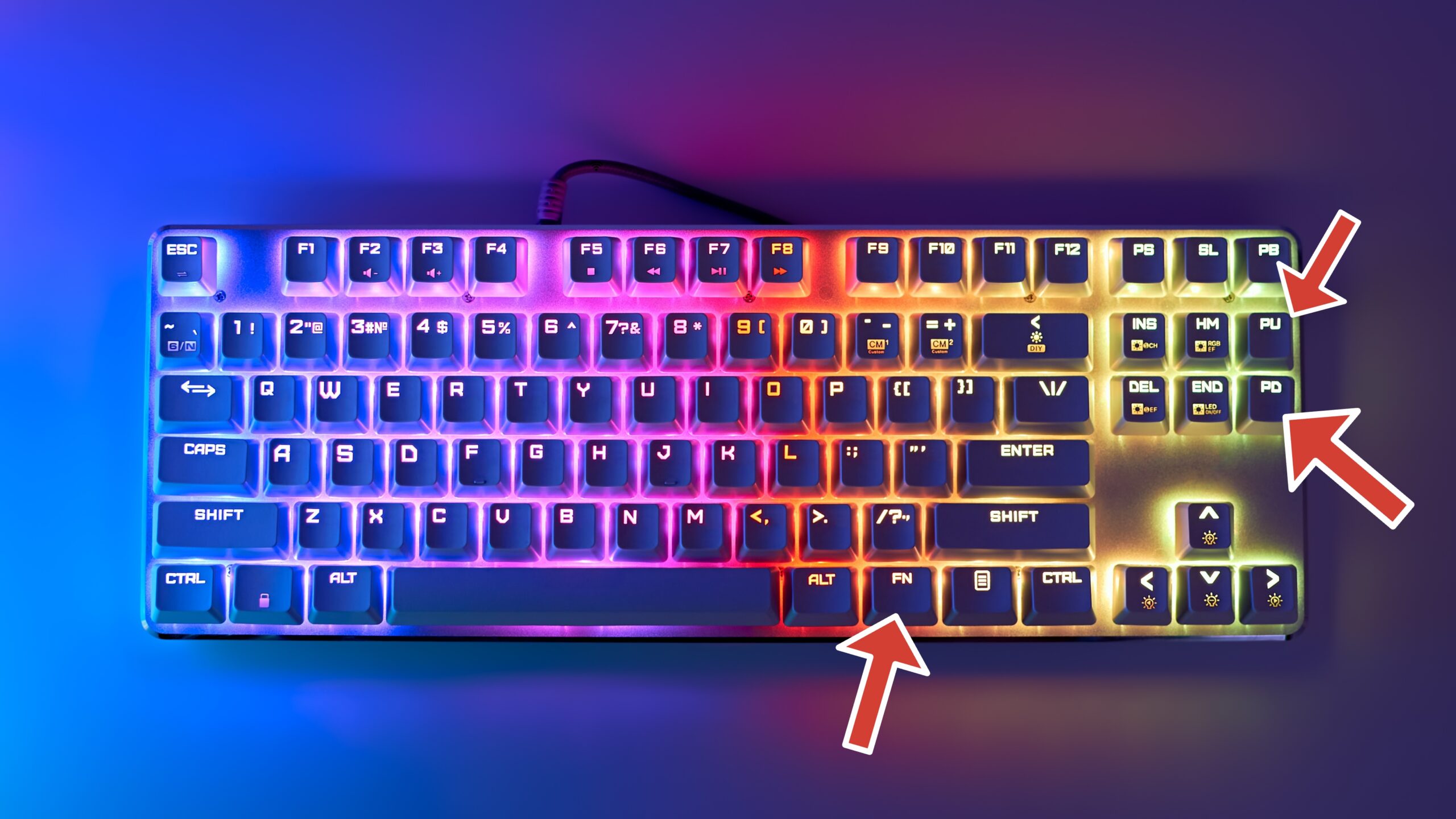 Helderheid aanpassen: U kunt ook de helderheid van de kleur verfijnen om verblinding te voorkomen of om een meer omgevingslichteffect in te stellen. Gebruik de toetsen FN + Page Up en FN + Page Down om de helderheidsniveaus aan te passen.