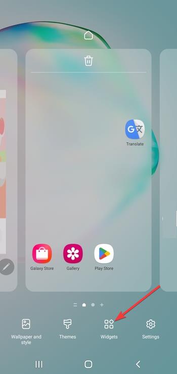Vanuit de opties die verschijnen, tikt u op Widgets. Hierdoor wordt een lijst geopend met alle beschikbare widgets die aan uw startscherm kunnen worden toegevoegd, inclusief de Google Zoekbalk.