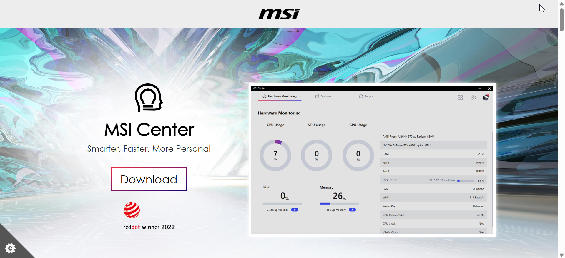 MSI Center biedt snelle overklokfuncties voor eigenaren van MSI-moederborden. Het integreert CPU-tuning, ventilatorregeling en hardwaremonitoring in één interface. Beginners waarderen de strakke lay-out en begeleide voorinstellingen.
