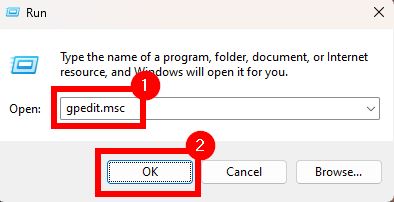 Omdat het een geavanceerde functie is, moet u de Groepsbeleid-editor aanpassen om deze functie in te schakelen. Dus om te beginnen opent u het dialoogvenster Uitvoeren door op de “Windows-toets + R“ te drukken. Typ vervolgens “gpedit.msc“ en klik op “OK“.