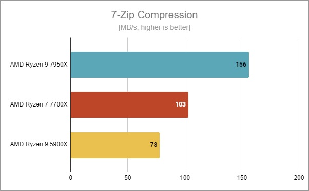 AMD Ryzen 9 7950X benchmarkresultaten: 7-Zip-compressie