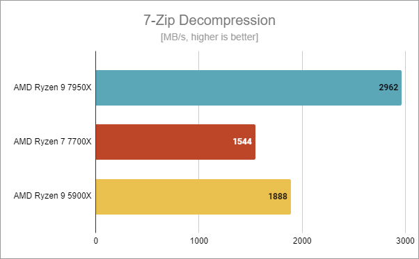 AMD Ryzen 9 7950X benchmarkresultaten: 7-Zip-decompressie