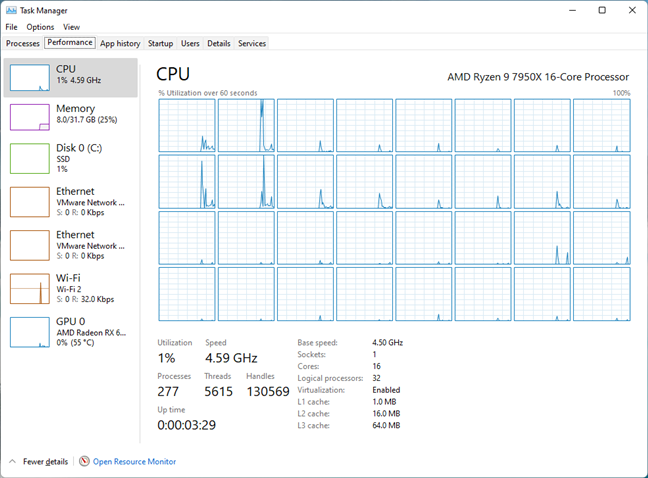 AMD Ryzen 9 7950X heeft 32 uitvoeringsthreads