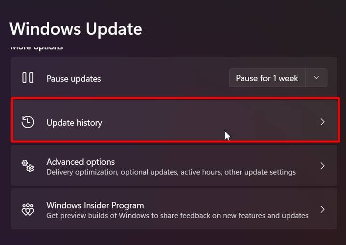 Ga naar Windows Update > Updategeschiedenis in Instellingen.