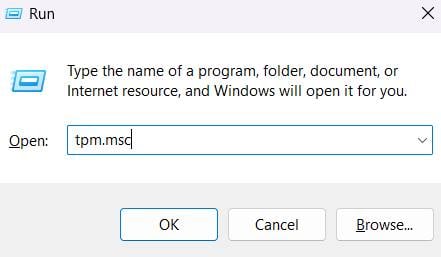 Druk op Windows + R om Uitvoeren te openen. Typ tpm.msc en druk op Enter.