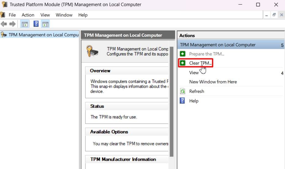Klik op TPM wissen…
