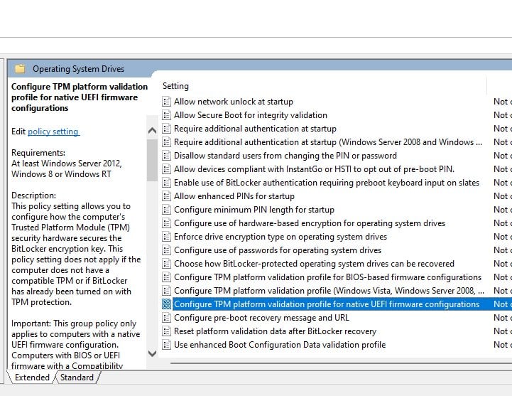 Klik aan de rechterkant op TPM-platformvalidatieprofiel configureren voor systeemeigen UEFI-firmwareconfiguraties