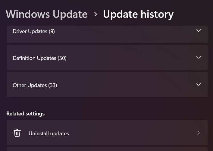 Ga naar Windows Update > Updategeschiedenis in Instellingen.