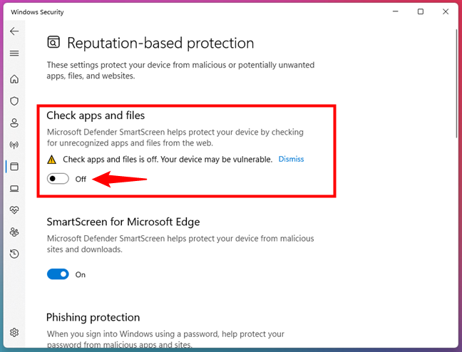Microsoft Defender SmartScreen is nu volledig uitgeschakeld op uw Windows 11-of Windows 10-computer. Als u het ooit weer wilt inschakelen, volgt u dezelfde stappen en schakelt u de instellingen in die u hebt uitgeschakeld.